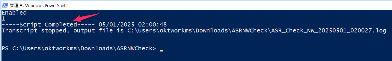 https://learn.microsoft.com/ja-jp/powershell/module/microsoft.powershell.security/set-executionpolicy?view=powershell-7.5“Script Completed” が出力されれば、スクリプトは終了です。