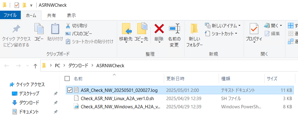 ログファイル名: ASR_Check_NW_yyyymmdd_hhmmss.log