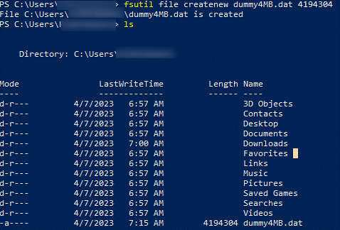 fsutil file createnew dummy4MB.dat 4194304