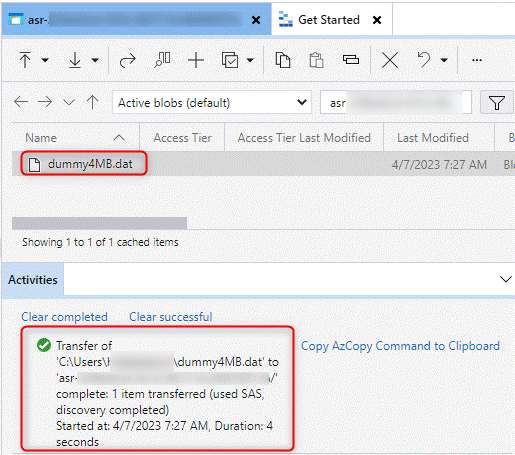 - 各コンテナーへのアップロードが正常終了することを確認します。