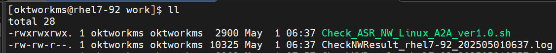 必要に応じて chmod コマンドなどを用いてパーミッションを変更してください。chmod 777 Check_ASR_NW_Linux_A2A_ver1.0.shスクリプトを実行ください。