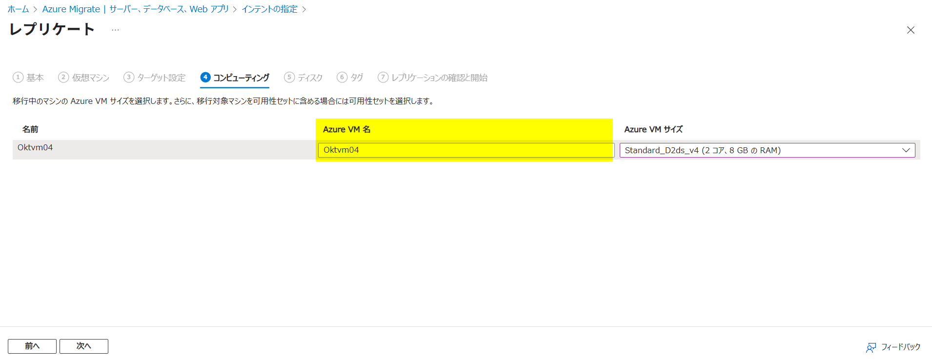 Azure VM 名は、レプリケートを構成する際に、ソース マシンと同名にすることも、異なる名前にすることも、どちらも可能です。